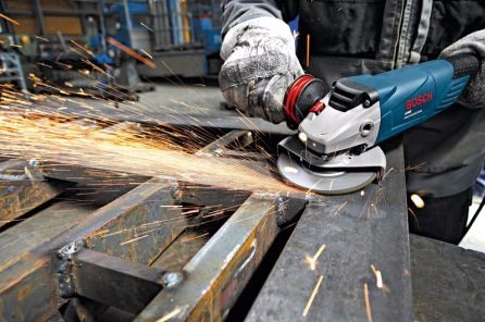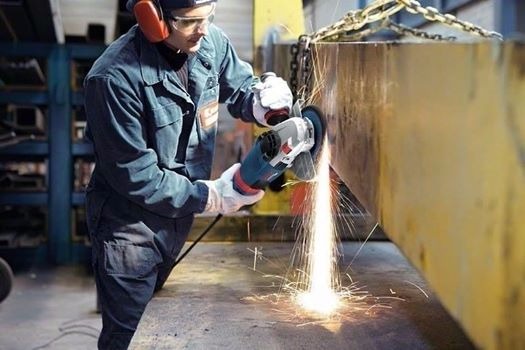 Шліфувальник елементів зі сталі, робітник із ножем та шліфувальною машиною